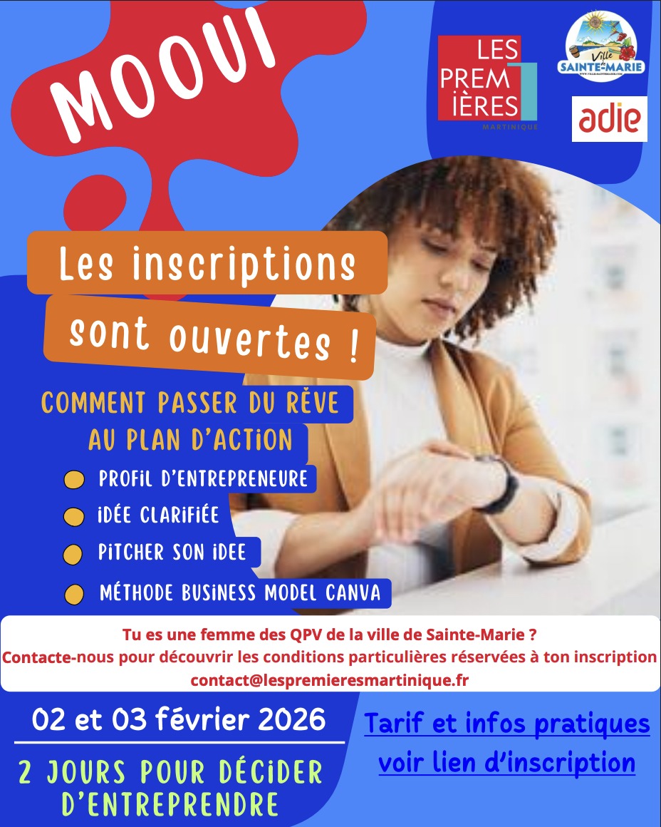 Les Premières Martinique, en partenariat avec L’Adie, vous donne rendez-vous pour le programme MOOUI.